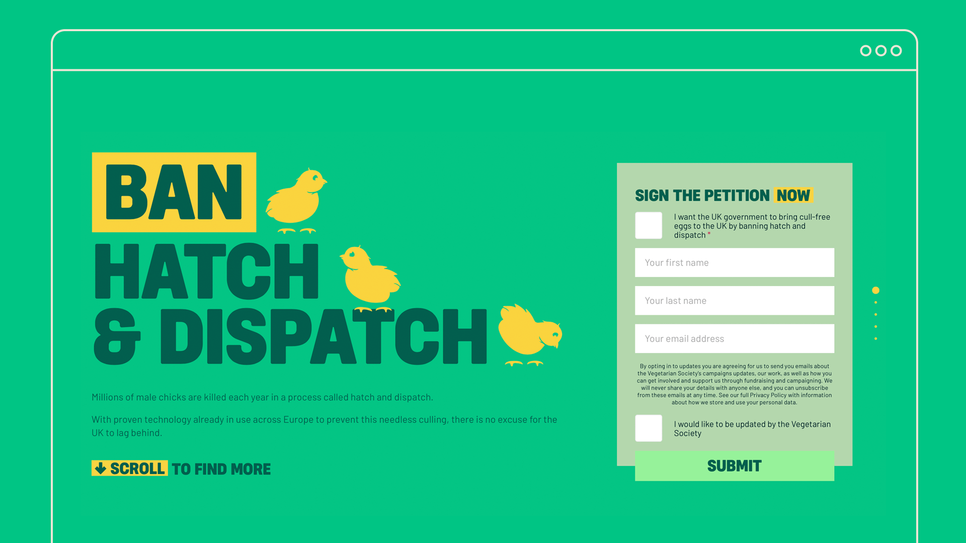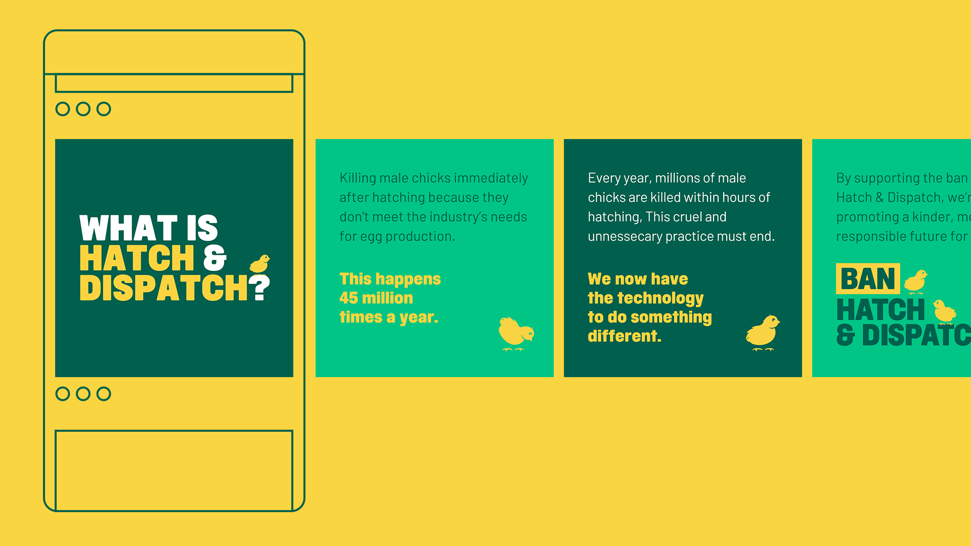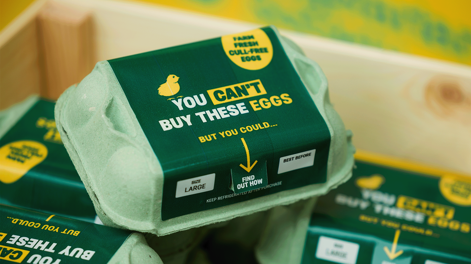 Produced in-house using a mix of traditional 2D, 3D, and vector animation we produced a 100-second animated campaign film, animated directly onto the surface of a virtual egg. Taking inspiration from the producer's stamps found on eggs, we brought to life the brief existence and cruel death of male chicks in a single, fluid shot, culminating in a flight down the Thames to bring the solution to the government's front door.
